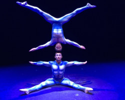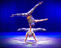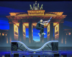 Auf Rollschuhen zeigt TJ-WHEELS ein Showprogramm der Sonderklasse – jonglierend, balancierend und stets mit unverwechselbarem Charme. Die gebürtige Russin Anna Shalamova verzaubert mit ihrem akrobatischen Ballett am Luftring. Eleganz und Körperbeherrschung: Das Duo Anastasiya und Yuliya Istomina balanciert mit reiner Muskelkraft. Die Hand-auf-Hand-Akrobaten vom Duo Magnus verwandeln die Bühne in einen surrealen Traum-Raum. Mit höchs- ter Konzentration und Perfektion lässt die Atlantis Group Skulpturen aus menschlichen Körpern entstehen. Durch das Programm führt Robert Woitas, dessen Wortakrobatik und kluger Witz für hemmungslose Lachsalven sorgen wird. Aus dem Hause Travados wird es auch wieder eine artistische Darbietung geben. Regie führt Valentin Kriger.