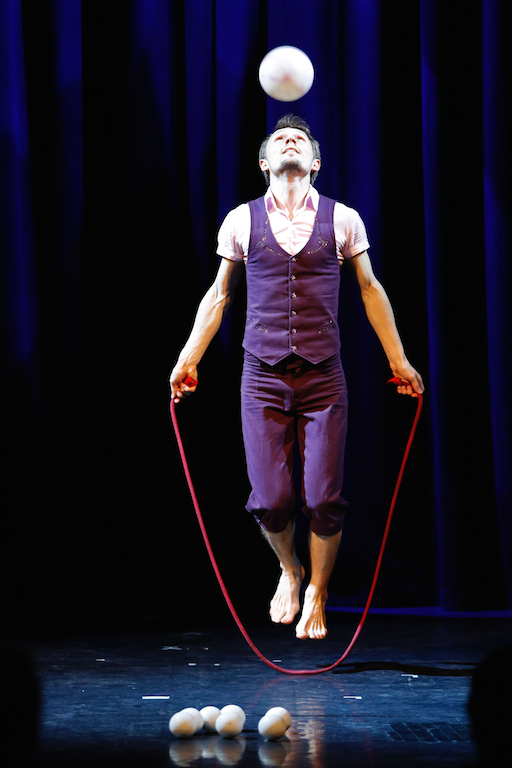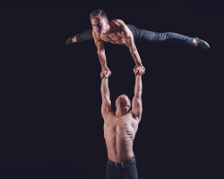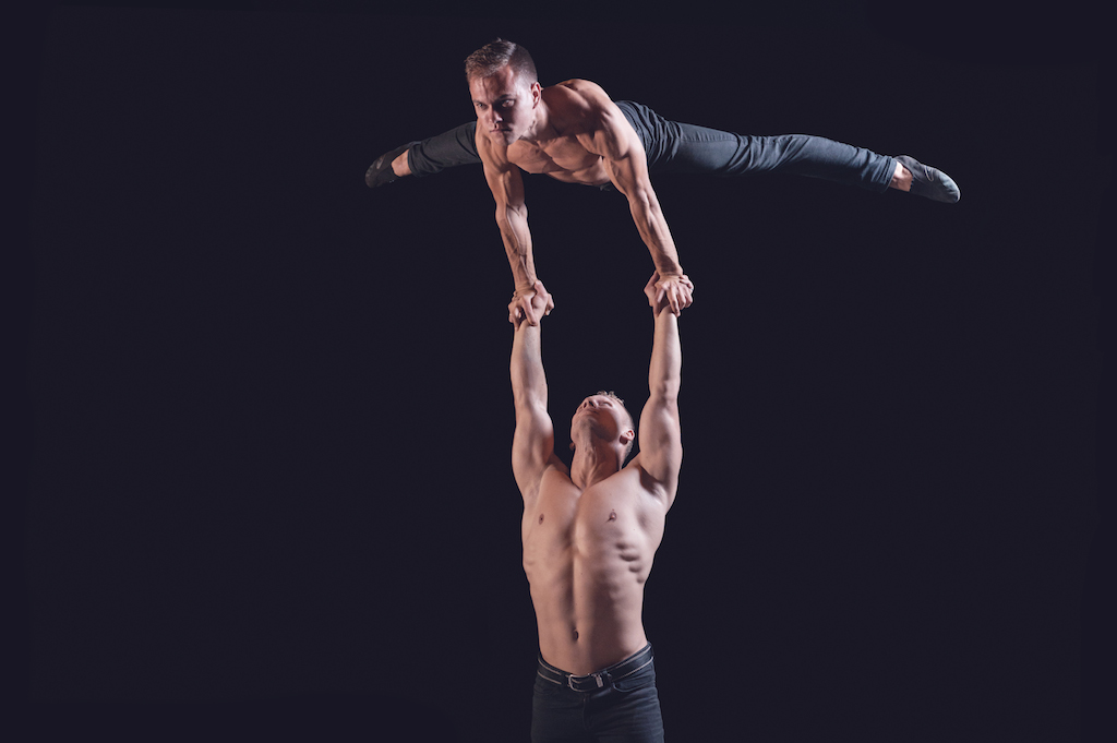 verbiegt und dabei dem Publikum den Kopf verdreht. Balljongleur Stanislav Vysotskyi entführt mit klassischer Jonglage kombiniert mit neuen Elementen in eine einzigartige Welt der Fußjonglage. Ebenso meisterhaft präsentiert das Duo Kuskov sein Können mit dem Körper: